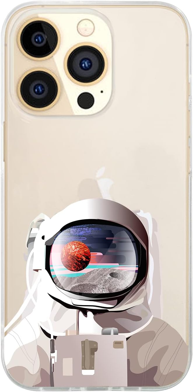 iPhone 13 Pro Case (6.1 inch), Fun Astronaut Design with Cool Planets Pattern Space Style Transparent Soft TPU Protective